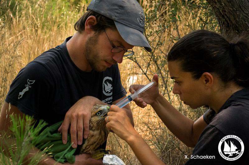 Τα γεράκια αυτά είναι τρία από τα πολυάριθμα τραυματισμένα άγρια ζώα, κυρίως πουλιά, που φέρνουν στο Αρχιπέλαγος κάτοικοι των νησιών όπου δραστηριοποιούμαστε. Αυτή η δράση αποτελεί μέρος της καθημερινότητάς μας που όμως σπάνια προλαβαίνουμε να δημοσιοποιήσουμε. Με την πολύτιμη καθοδήγηση των ανθρώπων της ΑΝΙΜΑ, όταν είναι εφικτό , προσφέρουμε πρώτες βοήθειες και σύντομη περίθαλψη σε κάποιον από τους ερευνητικούς σταθμούς μας, μέχρι να τα ελευθερώσουμε στο φυσικό τους περιβάλλον. Συχνά όμως, χρειάζονται φροντίδα εξειδικευμένων κτηνιάτρων και είναι απαραίτητη η μετάβαση τους στο κέντρο περίθαλψης στην Αθήνα. Οι δεκάδες μεταφορές θα ήταν αδύνατο να πραγματοποιηθούν χωρίς τη στήριξη της Hellenic Seaways, τους οποίους ευχαριστούμε για μία ακόμα φορά για την συνεχιζόμενη επί χρόνια προσφορά τους.