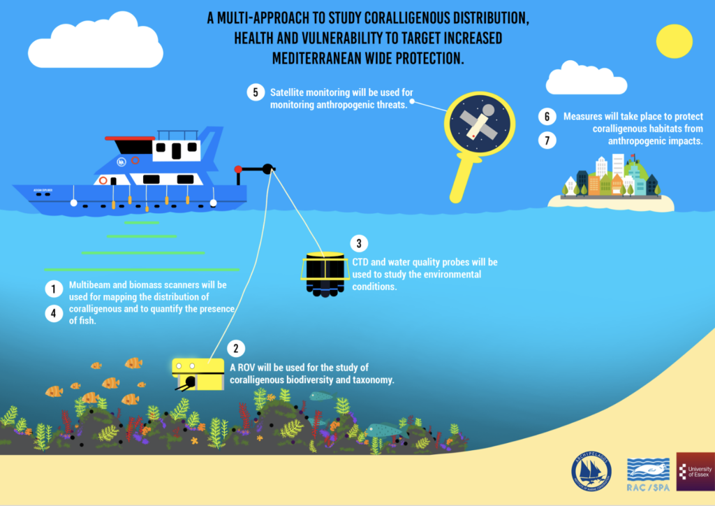 Η πολυετής προκαταρκτική έρευνα του Ινστιτούτου Αρχιπέλαγος, καθώς και η ανταλλαγή πληροφοριών με τις τοπικές κοινωνίες, κατέληξαν σε πιθανά σημεία ύπαρξης κοραλλιγενών οικοτόπων, των οποίων η χαρτογράφηση αποτελεί επιτακτική ανάγκη. Το Αρχιπέλαγος σχεδίασε και εφαρμόζει μία τεχνική ταχείας χαρτογράφησης με τη χρήση multi-beam sonar, scanner βιομάζας και έρευνες με εξ’ αποστάσεως Χειριζόμενο Όχημα (ROV), ώστε να εντοπιστούν και να αποτυπωθούν με ακρίβεια αυτά τα οικοσυστήματα στην ευρύτερη περιοχή του Αιγαίου και των ελληνικών θαλασσών.