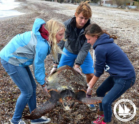 Επρόκειτο για μια αρσενική ενήλικη χελώνα Καρέτα (Caretta caretta), η οποία έφερε βαθύ τραύμα στο κεφάλι της, που κατά πάσα δυνατότητα, προκλήθηκε από προπέλα ταχύπλοου σκάφους. Η ομάδα παρείχε τις πρώτες βοήθειες στην άτυχη χελώνα και ύστερα τη μετέφερε στην Ερευνητική Βάση του Αρχιπελάγους στη Σάμο.