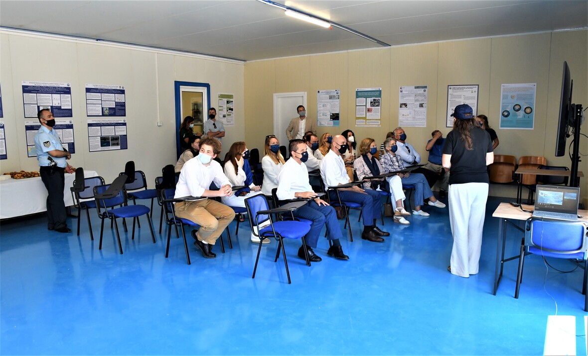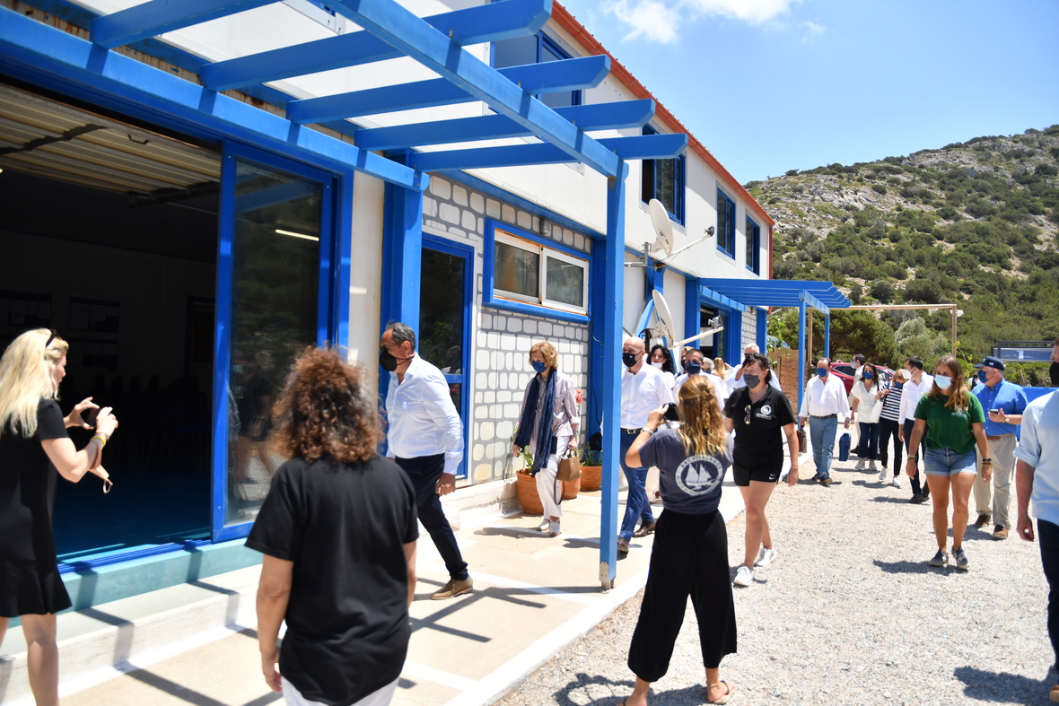 Παρουσία του Δημάρχου Λειψών, κ. Φώτη Μάγγου ξεναγήθηκαν στη συνέχεια στο υπό δημιουργία Καταφύγιο Θαλάσσιας Ζωής Αιγαίου, το οποίο ήδη λειτουργεί ως ερευνητικό κέντρο. Γνώρισαν την πολυεθνική ομάδα ερευνητών και το προσωπικό του Ινστιτούτου και επισκέφθηκαν τα εργαστηρια μικροπλαστικής ρύπανσης και το υπό-δημιουργία κτηνιατρείο, ενώ παρακολούθησαν μέρος της διαδικασίας επαναφύτευσης των θαλάσσιων λιβαδιών Ποσειδωνίας που πραγματοποιούνταν από μέλη της ερευνητικής ομάδας του Ινστιτούτου Αρχιπέλαγος.