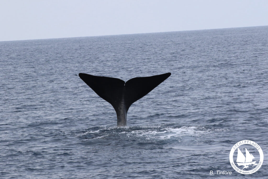 We recorded some great acoustics with the hydrophone and eventually detected sperm whale clicks again. After spending the whole day in the Trench, we went back to the Ikarian port very satisfied since we had three Sperm whale sightings with two individuals. We were able to identify them by the characteristics of their tail with the help of the pictures we took for Photo ID. One of them was the whale we had spotted the day before while one other was also recorded in the same area several years ago. It felt great having achieved this and therefore being able to provide data for Archipelagos’ conservation efforts.