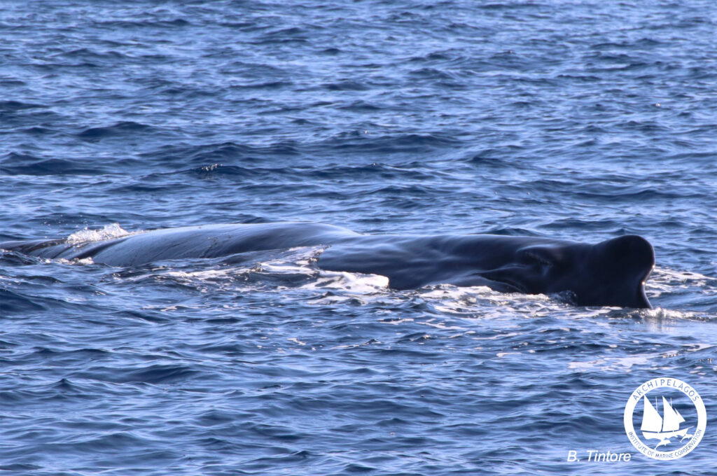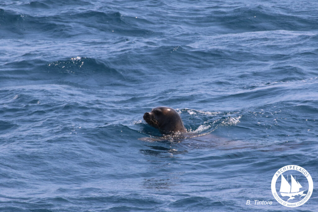 Archipelagos Marine Mammal Research team took part in a very interesting boat survey in the region of the Trench in the north of Ikaria island. This is a very rich biodiversity hotspot reaching 1400m depth, where there are still a lot of knowledge gaps to cover. This expedition, under ideal weather conditions allowed us to increase our knowledge and understanding of this area and catalogue species that are rarely sighted. Among others we recorded the migration of 2 male sperm whales (Physeter macrocephalus), as well as 5 dolphin pods, including Bottlenose (Tursiops truncatus) and Common (Delphinus delphis) dolphins, while we also had a very interesting behavioural observation of a Mediterranean monk seal while feeding.