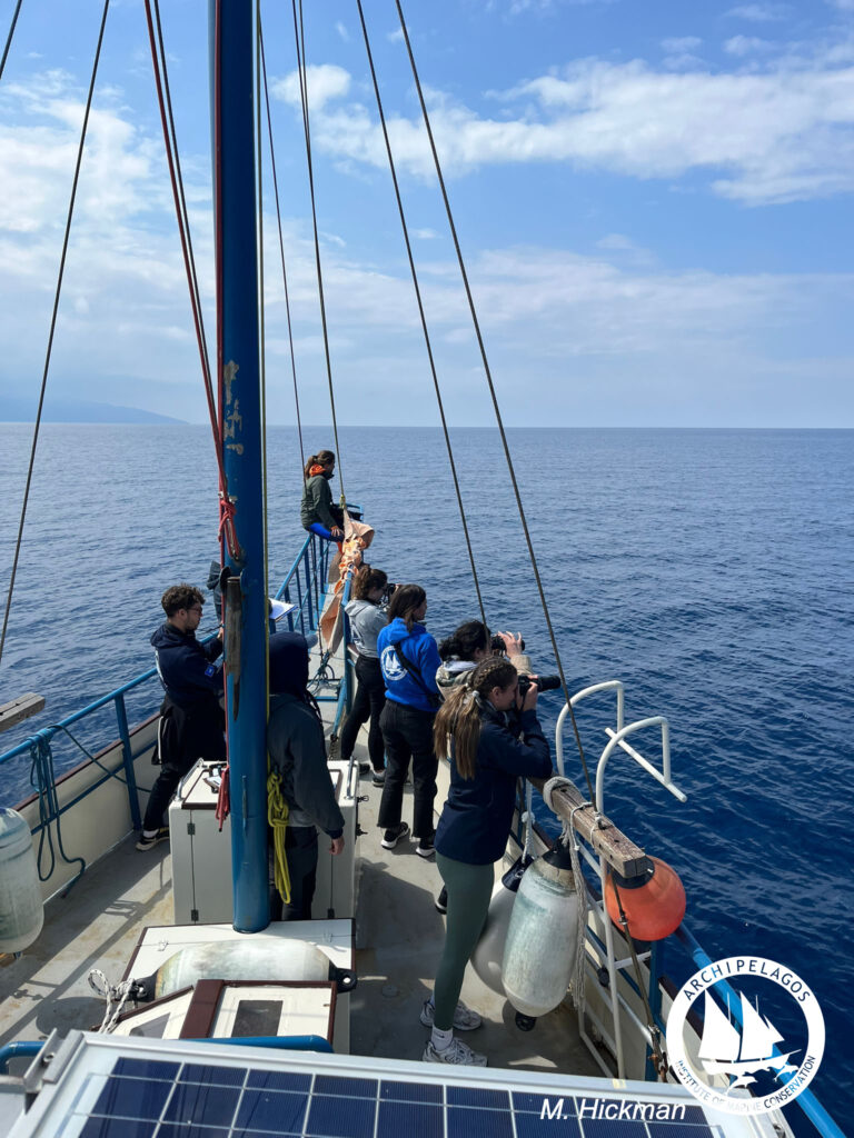 The crew on board was comprised of two marine mammal researchers Beatriz and Andrea, our Captain Periklis and a group of interns from different countries. We all worked very hard
