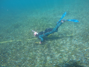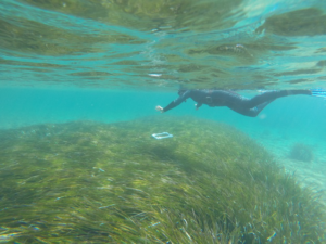 Picture 1.Following a transect to estimate the P.oceanica precentage cover.