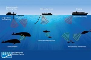 Fig. 4: The rapid increase of anthropogenic noise pollution during the last decades may have deeply impacted marine mammals’ general health.  Studying this pollution is essential for both the protection of cetaceans and the preservation of marine ecosystems.