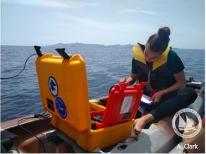 To collect bioacoustics data, the team at Archipelagos use an Aquarian AS1 hydrophone with a TASCAM recorder/PA-4 preamplifier. The data is then recorded by one person who listens to real-time acoustic sounds from the hydrophone. The information on all the different sounds that can be heard is then transcribed on a data sheet and transferred into the main database once the survey is finished.