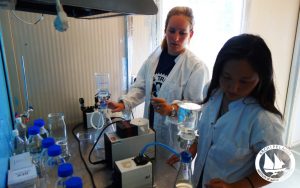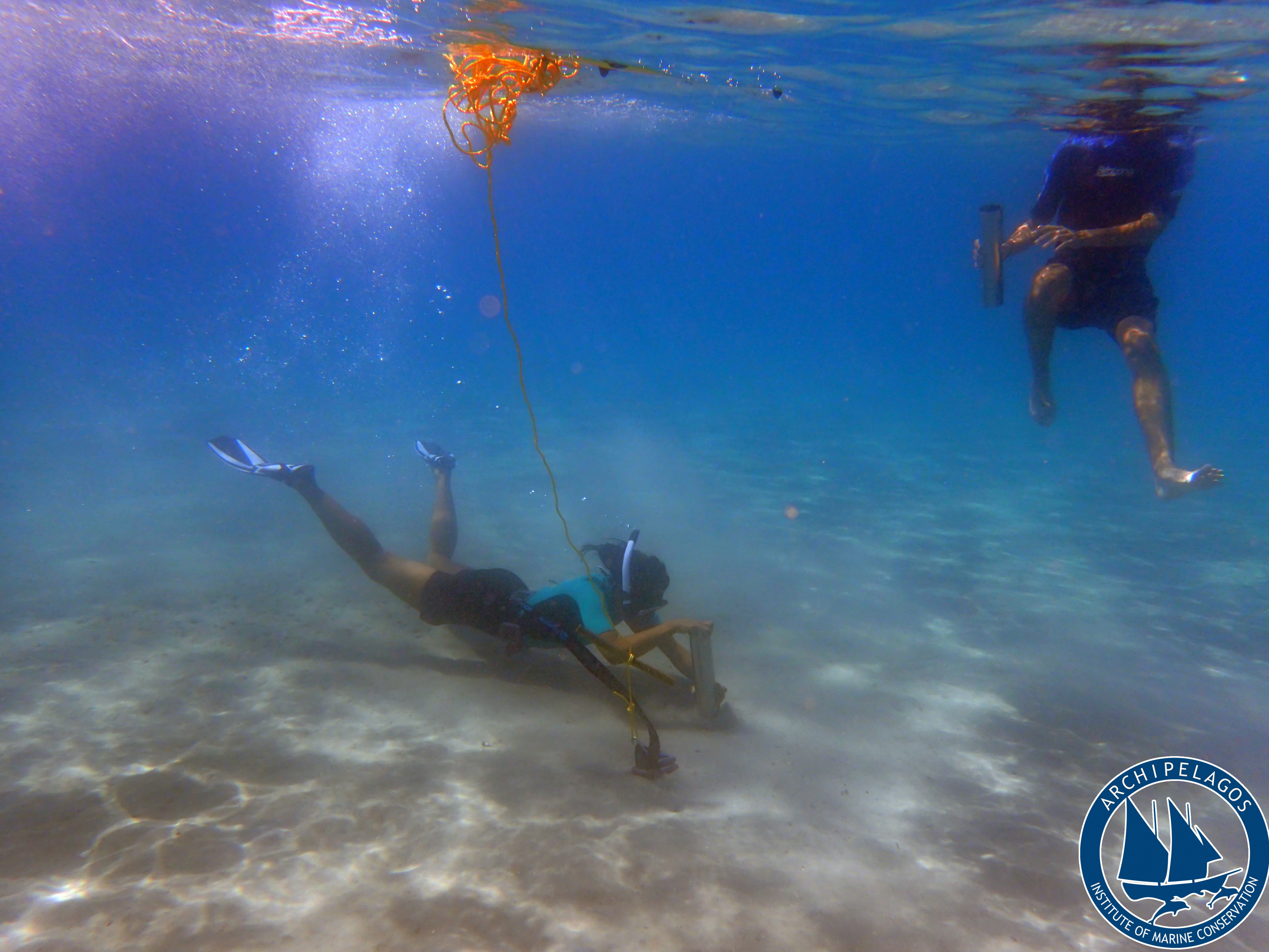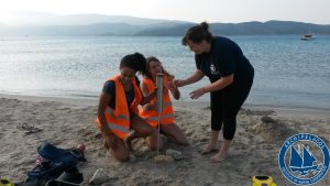One of the current projects of the Microplastic Team of Archipelagos is to quantify and identify the microplastics in the shallow marine sediments starting at Psili Amos, a beach located in the southeast of Samos Island. This is a touristic beach and has a large quantity of macro plastics (> 5 mm), making it likely that microplastics are also abundant here. The Archipelagos Microplastic Team aims to better understand the spatial distribution of microplastics in shallow marine sediments. For this reason, three transects of 100 m, perpendicular to the shoreline were conducted using a sediment core. The top 15 cm of the shallow marine sediment were sampled. In the laboratory the organic matter is removed from the microplastics and sediment. Consequently, a density seperation method is used to separate the microplastics from sediment. Finally, the supernatant is removed and filtered. The microplastics are identified through a 10x and 40x magnification lens and classified according to colour and fragment type: rounded, sub rounded, angular, and sub angular.