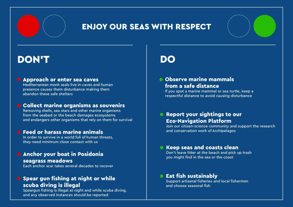 Archipelagos invites you to join our citizen science platform, Eco-Navigation, where sea enthusiasts can report their observations from their journey at sea. Through Eco-Navigation, you can easily collaborate with expert scientists on marine research and conservation efforts – just by sending us some simple details. You can help us by reporting sightings of marine mammals and other sea cratures such as: dolphins, whales, sea turtles, seals, jellyfish blooms, shellfish and invasive fish species.