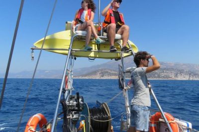 Using a dedicated marine mammal research boat surveys focus on monitoring the abundance, distribution and behavior of dolphin populations (common, bottlenose, striped and Risso’s dolphins), as well as whale populations (sperm whales and Cuvier’s beaked whales).
