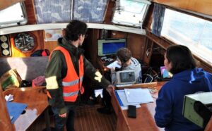 As a member of the Bioacoustics Team, I attend as many boat surveys as I can in order to set up the Hydrophone, listen to sounds and record acoustic data, as well as survey for Cetaceans and collect data on marine litter, sea-birds and environmental variables. We use real time Passive Acoustic Monitoring (PAM) method to detect and record cetacean sound production using a four-channel Towed Hydrophone Array. Environmental data is also collected throughout surveys including boat presence.