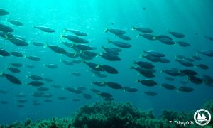 Fish community composition of six bays with seagrass meadows is assessed by Archipelagos marine conservation team in Lipsi island. Species composition is assessed by non-damaging underwater visual census (UVC) method. Three transects representing the depth zone of 0-5 m are observed by two surveyors in each sampling site. Each fish individual is identified to species level and classified into 5 cm size categories. The total abundance and biodiversity of the species encountered is assessed.