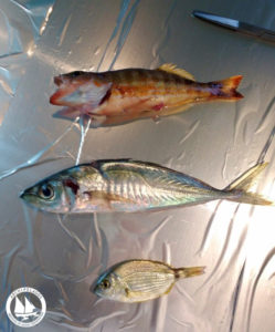 Figure 1.Some of the samples used for the experiment: three fish species on the left (from top to bottom: S. cabrilla, T. mediterraneus, D. annularis)