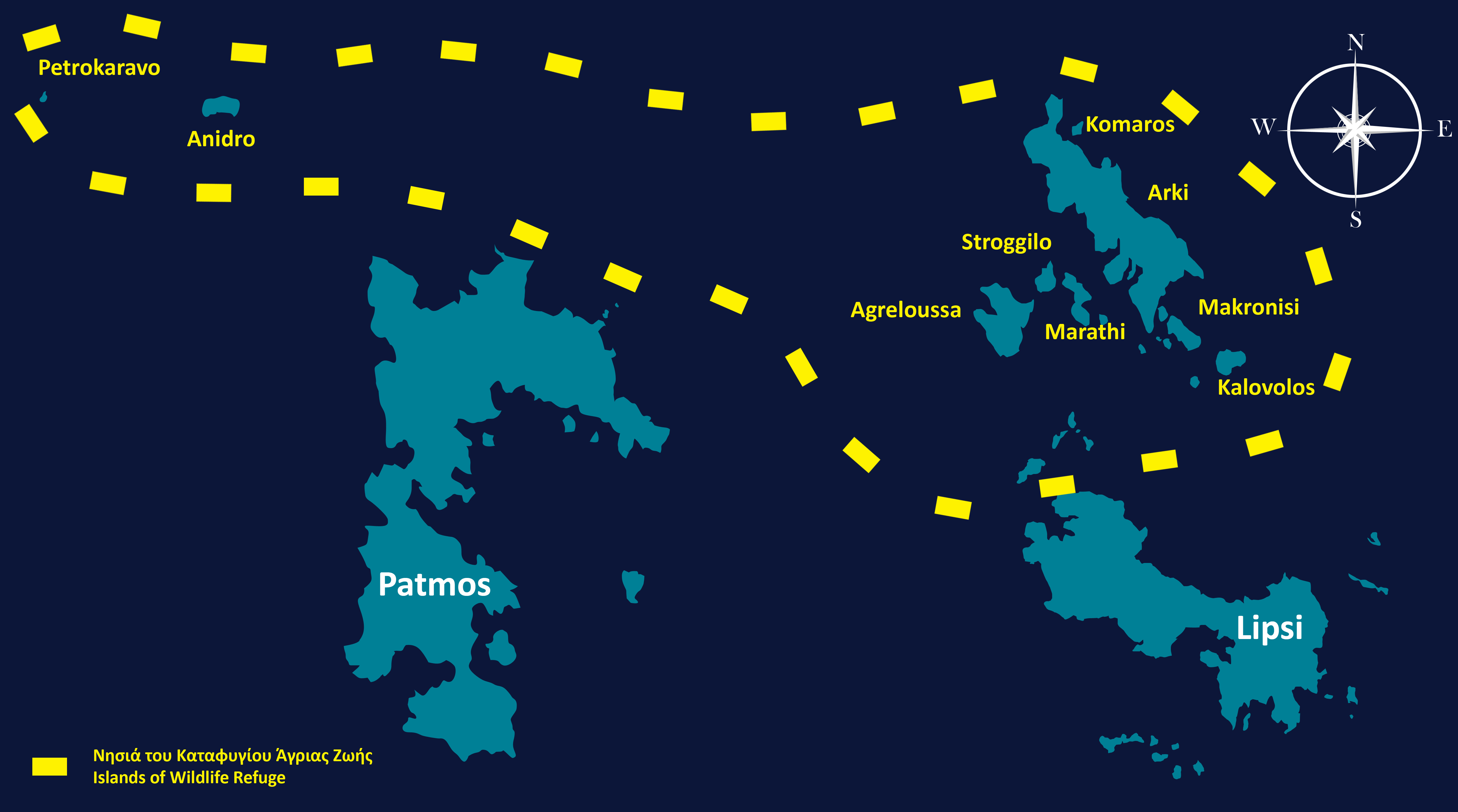 Archipelagos conservation efforts aim to protect island fauna, flora and their habitats focusing on species of special concern with imminent threats. Current research to fill gaps in knowledge is being conducted on key species including the Golden Jackal, the Mediterranean Chameleon, but also numerous protected and endangered species of birds, bats and island flora.