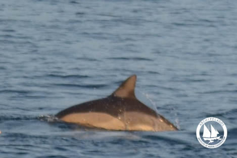 The Short-beaked Common dolphin has a distinct yellow hourglass colouration along its side. Each individual of this species has a unique white pattern, similar to the fingerprint of humans, on its dorsal fin; thus, making it identifiable. In order to analyse the data, clear photos of the dorsal fin must be taken from side on.