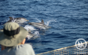 The surveys usually occur between the islands of Ikaria, Fourni and Samos. This area is characterized by a deep-water trench that exceeds 1000 meters in depth and hosts a rare diversity of marine life. The Ikaria trench is one of the most important migratory routes and feeding areas for large marine mammals in the North-East Mediterranean, such as sperm whales (Physeter macrocephalus), Cuvier’s beaked whales (Ziphius cavirostris) and Risso’s dolphins (Grampus griseus).