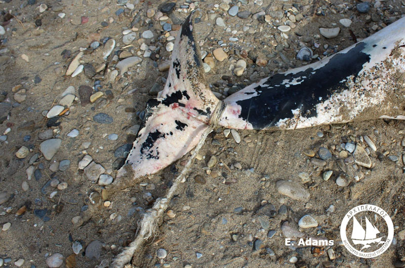 A significant observation is that the dolphin’s tail was tied with a rope – obviously, a human action – while there were additionally lacerations on the dolphin’s body, allowing it to sink and have such a violent killing remain undetected. Unfortunately, this is not an isolated event but common practice among a minority of fishermen in many regions of the Greek seas. Through civilian complaints, we have reports of particular fishing vessels and fishermen that cause intentional killings; however, we are looking for further evidence in order to be able to have solid proof of the aforementioned disgusting actions.