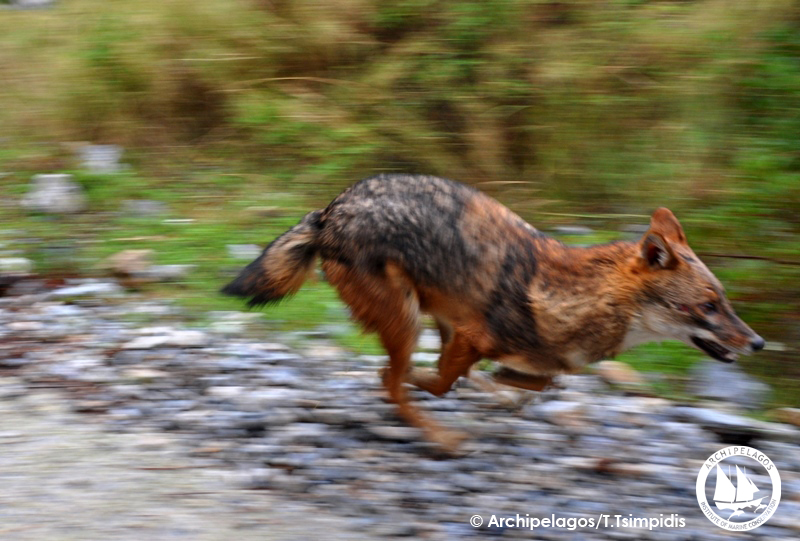 Ενα πρωινό στα μέσα του Νοέμβρη ειδοποιηθήκαμε τηλεφωνικά για ένα Χρυσό Τσακάλι που είχε βρεθεί τραυματισμένο στην άκρη ενός δρόμου, λίγο έξω από το Βαθύ της Σάμου,. Η κινητοποίηση των ανθρώπων του Αρχιπελάγους και κατοίκων του νησιού, ήταν άμεση και αφού παρασχέθηκαν οι πρώτες βοήθειες από τον κτηνίατρο κ. Καραμηνά το τσακαλάκι αναχώρησε άμεσα για τον Πειραιά με συνοδεία από ερευνητή του Αρχιπελάγους. Στην Αθήνα δέχθηκε την εξειδικευμένη φροντίδα από τους ανθρώπους και τους εθελοντές του Συλλόγου Προστασίας και Περίθαλψης Άγριας Ζωής ΑΝΙΜΑ.