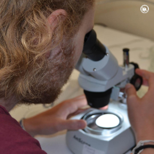 Microplastics research consists of recording the amount, type, and size of microplastics. This is the final step, however. Before any of this analyzation can occur a process must first be completed whose goal is to isolate the microplastics from a mixture of organic matter (remnants of the stranded animal’s guts) and microplastics. This process involves dissolving the organic matter with the proper chemicals, followed by filtering this mixture through a filter paper which traps only the microplastics. The rest of the unwanted solution passes through the filter paper and is disposed of. Once the filter paper has enough time to dry, it is ready to be analyzed for microplastics under the microscope.