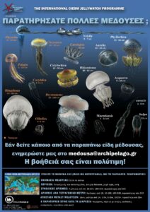 Σε συνεργασία με τη Διεθνή Επιτροπή για την Επιστημονική Εξερεύνηση της Μεσογείου CIESM – Mediterranean Science Commission το Ινστιτούτο Αρχιπέλαγος συμμετέχει στη διαμεσογειακή δράση “Jellywatch”. Μέσω της δράσης αυτής, συγκεντρώνουμε από μέσω των ερευνητών μας αλλά και από το κοινό, στοιχεία σχετικά με τις εξάρσεις μεδουσών σε όλη τη Μεσόγειο.