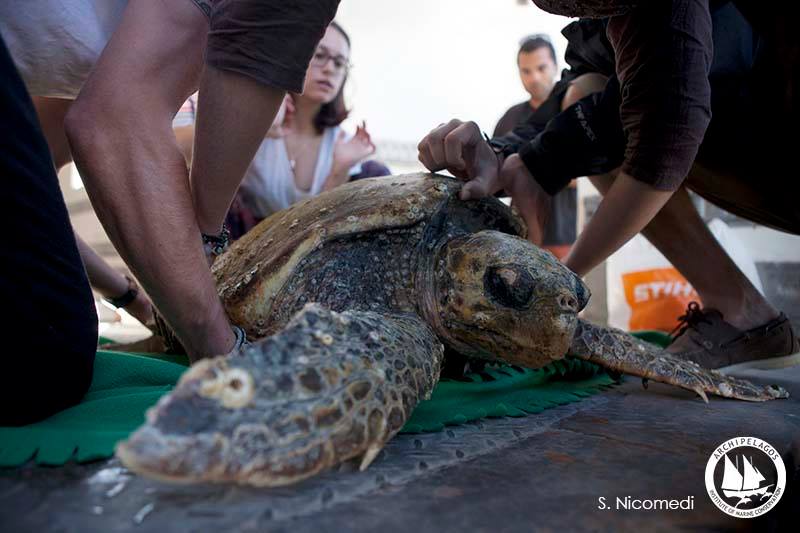 Άλλη μία θαλάσσια χελώνα περισυλλέχθηκε τις προηγούμενες ημέρες από ερευνητές του Αρχιπελάγους. Όταν εντοπίστηκε ήταν εγκλωβισμένη ανάμεσα σε χιλιάδες επιπλέοντα κομμάτια πλαστικών απορριμμάτων, ενώ ήταν ιδιαίτερα αδύναμη και είχε πολλές ημέρες ή εβδομάδες να τραφεί. Αφαιρέσαμε κομμάτια πλαστικού ακόμα και μέσα από το στόμα της.