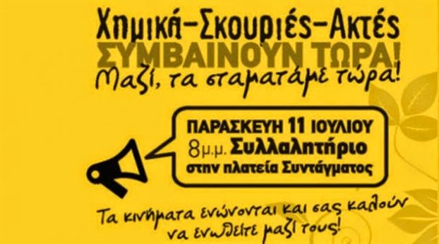 To Αρχιπέλαγος καλεί όλα τα μέλη και τους φίλους του, καθώς και όλους τους ενεργούς πολίτες, να δώσουν το παρόν στο Συλλαλητήριο: Χημικά- Σκουριές- Ακτές ΣΥΜΒΑΙΝΟΥΝ ΤΩΡΑ – Μαζί τα Σταματάμε Τώρα, που θα γίνει σήμερα 11 Ιουλίου, στις 8μμ στην πλατεία Συντάγματος, αλλά και σε όλες τις αντίστοιχες δυναμικές κινητοποιήσεις.